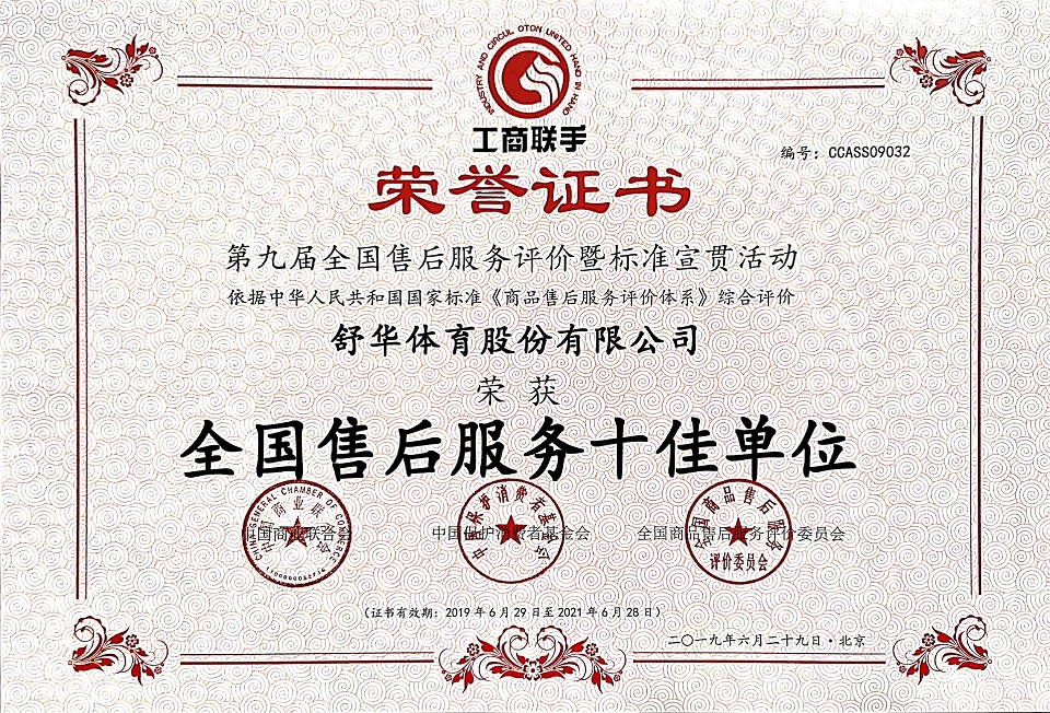 2017至2018年,球速体育连续两年以第一名入围年度“中国轻工业健身器材行业十强企业”;2018年,球速体育入驻平昌冬奥会“中国之家”,同年荣获“中国健身器材行业最具影响力品牌”。 From 2017 to 2018, Shuhua was named the "Top 10 Enterprise of Body Building Equipment Industry in China Light Industries " for the second consecutive year. In 20