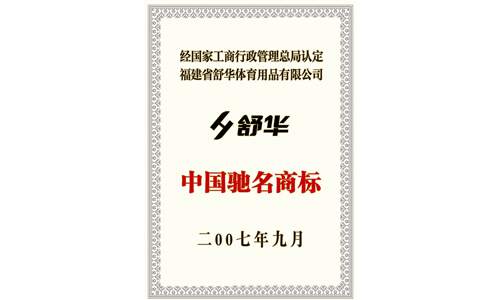 “球速体育”商标经国家工商行政管理总局认定为“中国驰名商标”。 Shuhua was recognized as “Famous Trademark of China” by SAIC